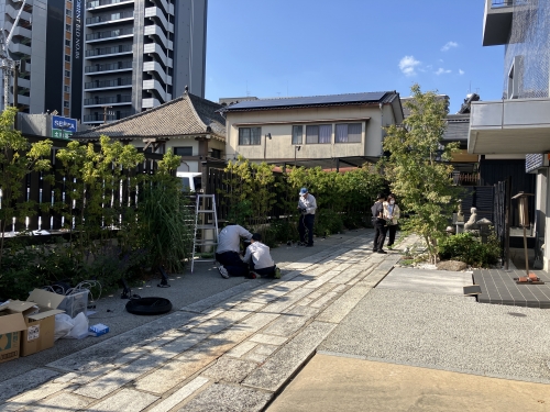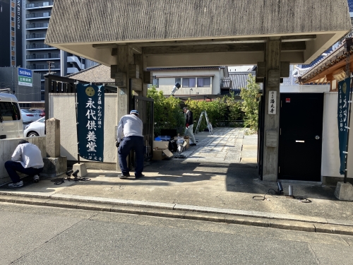 ライトアップウォーク2025 岩崎電気様照明器具設置風景 お知らせ 2025.10.28 博多旧市街ライトアップウォーク2025の準備が進められ、照明器具の仮設置が行われました。 弊社取引メーカーである岩崎電気株式会社様が海元寺(博多区中呉服町)を彩られるということで 会場を見学させていただきました。 夜には実際にライトアップされている様子を拝見しましたが、照明によって海元寺は幻想的に彩られ、 テーマである「光の森」を思わせる光景でした。 是非足を運んで、いつもとは違う夜の海元寺を体感してみてください。