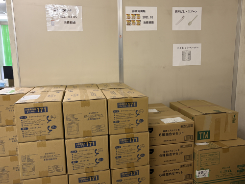 飲料水や非常食など、備蓄品を社内に準備し、いざという時にも対応出来る体制づくりを進めています。